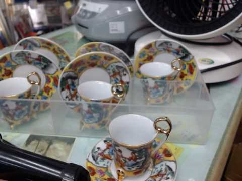 古代彩繪金邊咖啡杯組