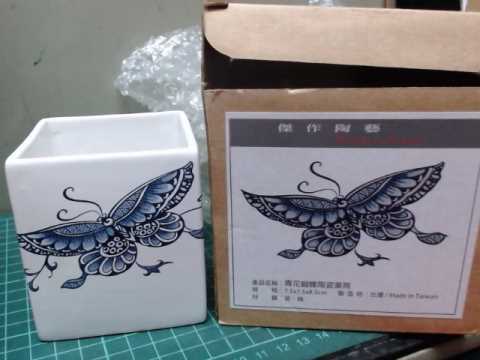 青花蝴蝶陶瓷筆筒